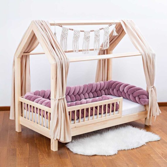 Ochraniacz warkocz do łóżeczka wrzosowo-różowy– 5 pasm