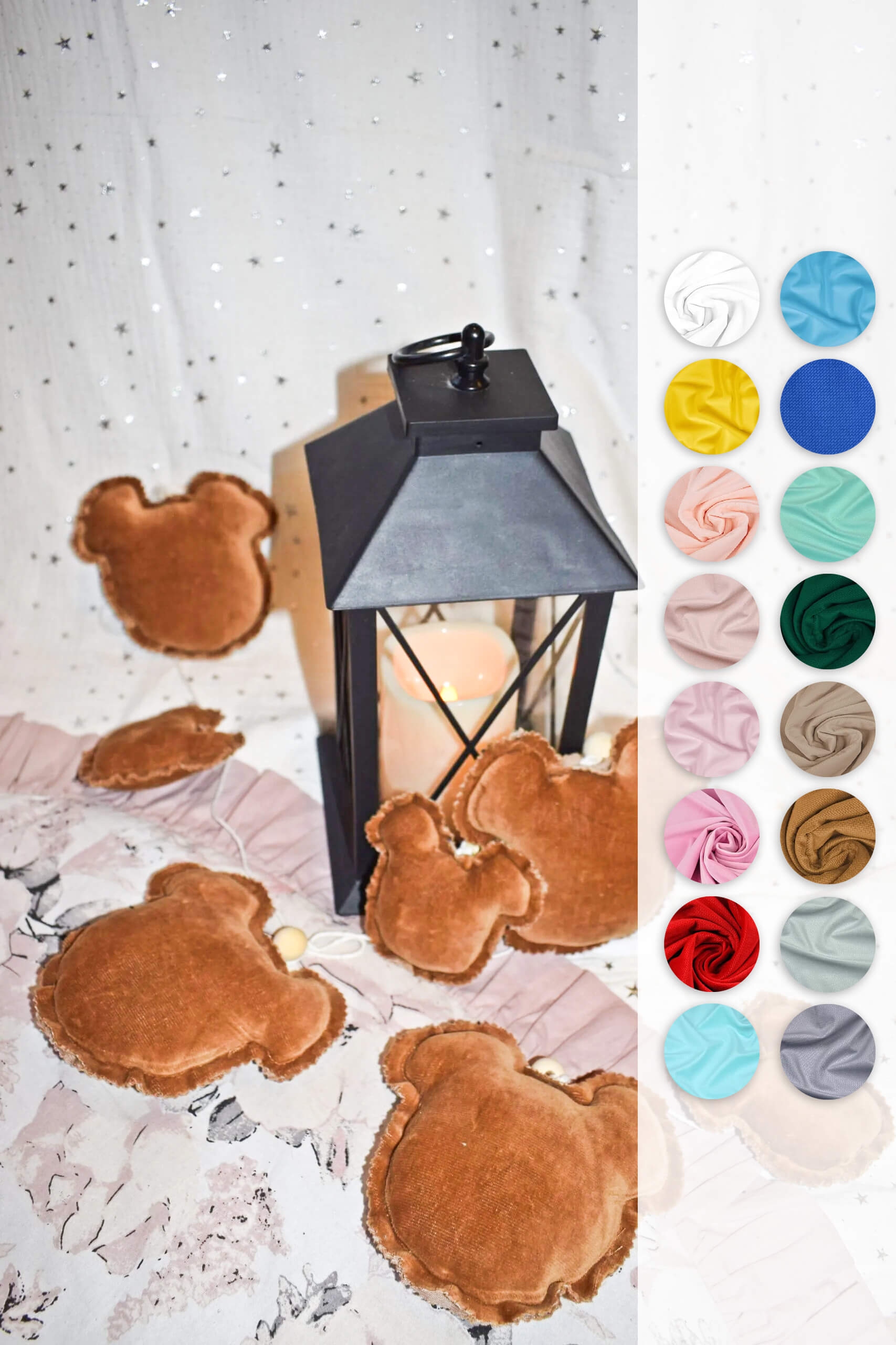 A kto powiedział, ze jak miś to tylko pluszowy? Piękne girlandy które idealnie sprawdzą się jako ozdoba pokoju zarówno tych mniejszych jak i większych dzieci. Dopełnieniem całości będą przepiękne poduszki dostępne w naszej ofercie. Całość wykonana z wysokiej jakości tkaniny Velvet oraz wypełniona antyalergiczną kulką silikonową, całość zawieszona na 100% sznurku bawełnianym. Przy każdym elemencie znajduje się naturalny drewniany koralik stanowiący nie tylko element ozdobny ale przede wszystkim stabilizuje on pojedyncze elementy.