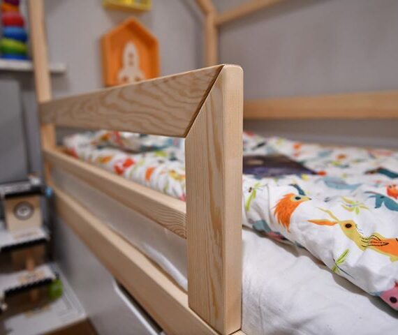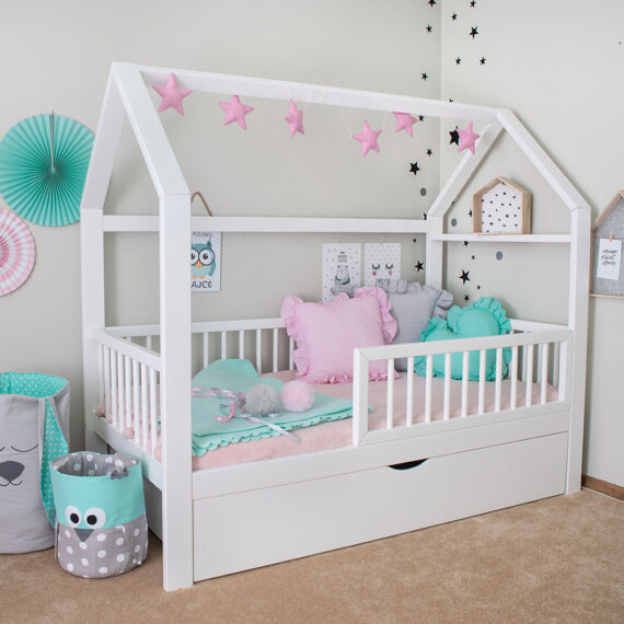 Łóżko domek Letho z szufladą to wysokiej jakości łóżko w stylu skandynawskim -wykonane jest z pierwszej klasy kantówki sosnowej o przekroju 8×3 To wspaniałe miejsce nie tylko dla snu ale i bezpiecznej zabawy dziecka