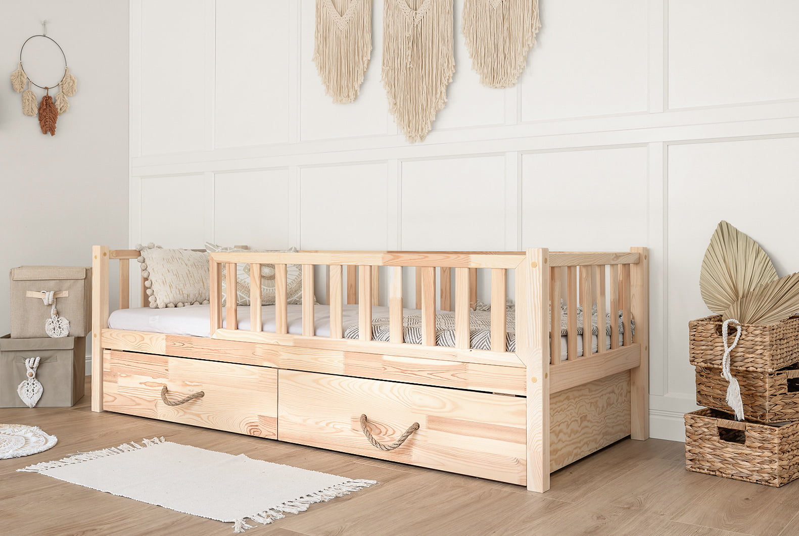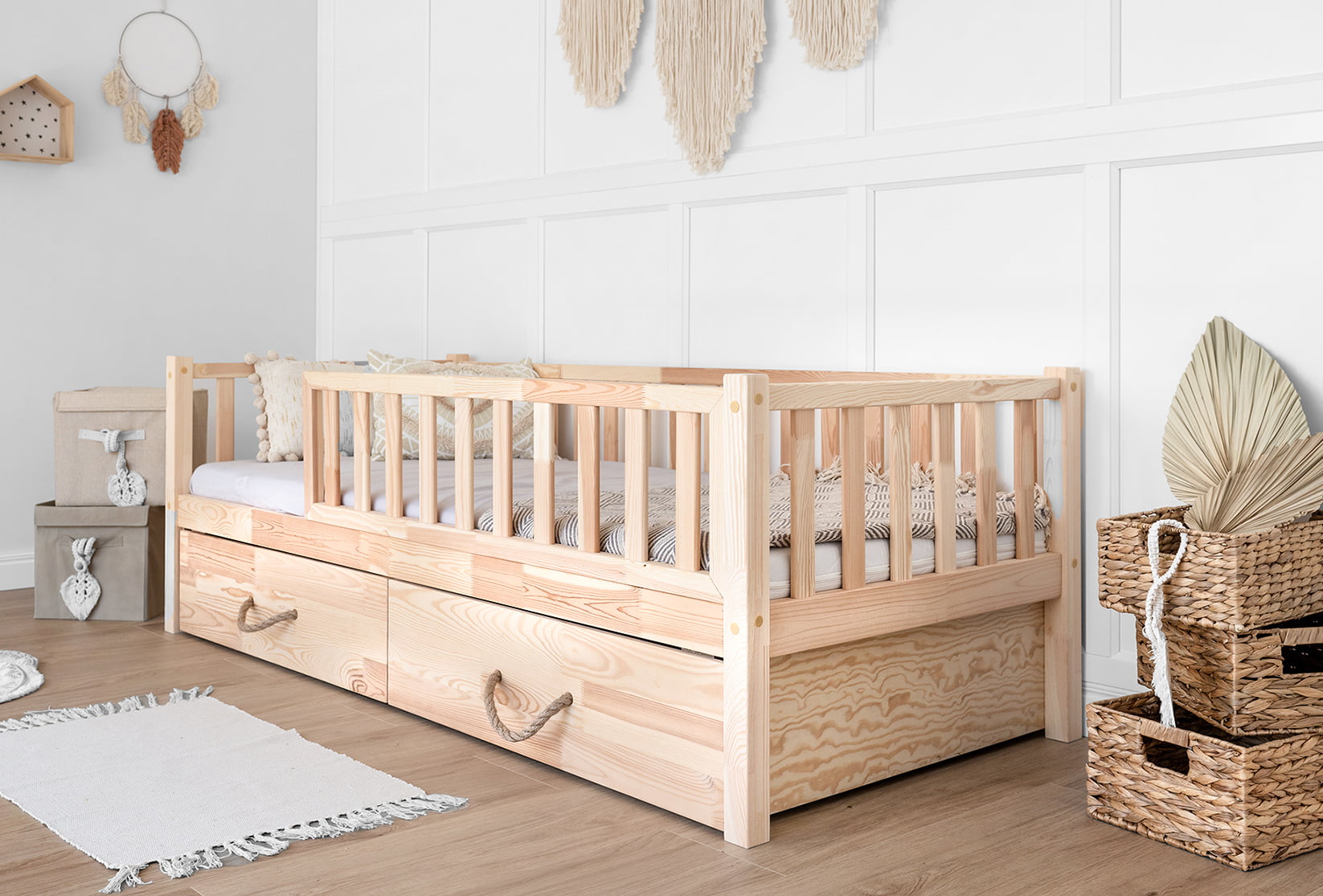 Dla małych rozmiarów łożek o długości do 140cm + 1 szuflada- zostanie wykonany 1 uchwyt linowy