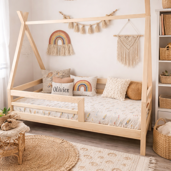 Tipi bez szuflady to wysokiej jakości łóżko w stylu skandynawskim -wykonane jest z pierwszej klasy kantówki sosnowej o przekroju 5×5.