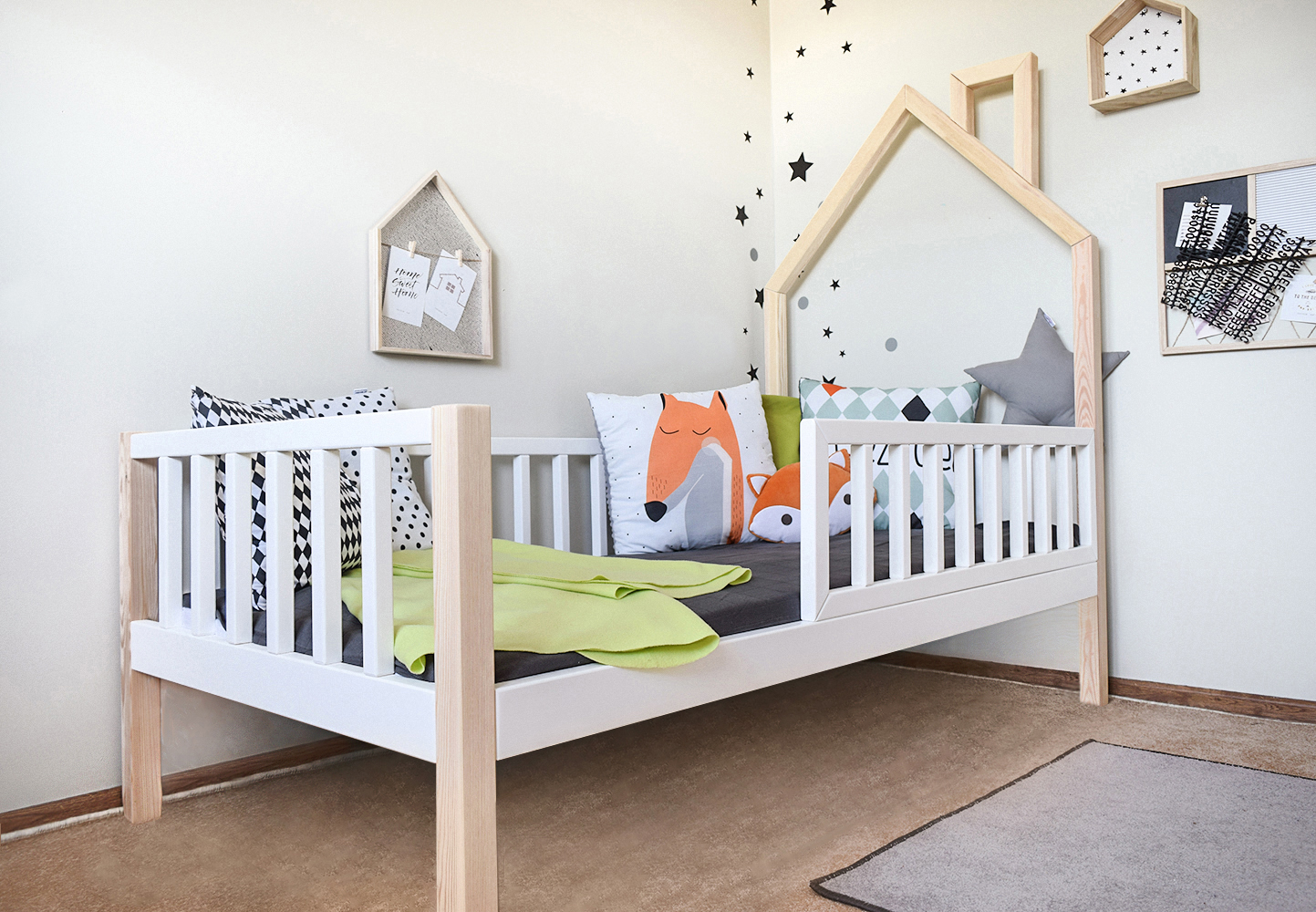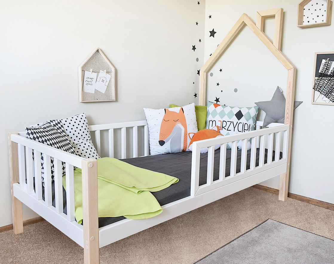 Łóżko domek Tris bez szuflady to wysokiej jakości łóżko w stylu skandynawskim -wykonane jest z pierwszej klasy kantówki sosnowej. To wspaniałe miejsce nie tylko dla snu ale i bezpiecznej zabawy dziecka