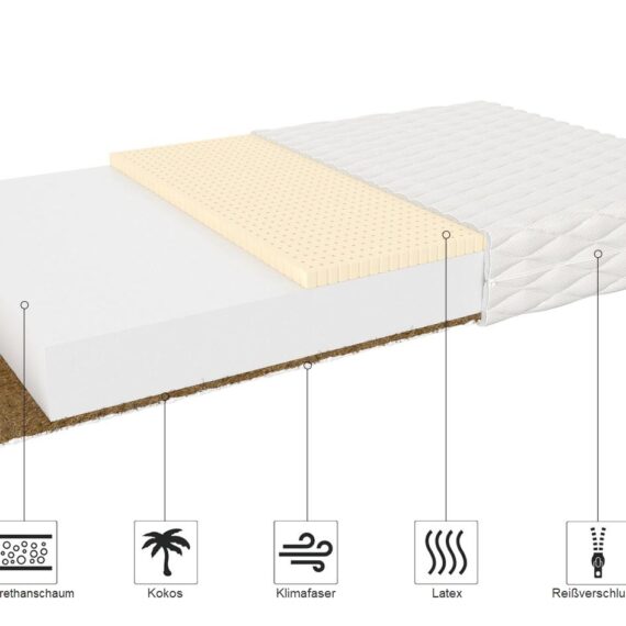 PIKOLO to materac, którego bazę tworzy pianka poliuretanowa T25, o podwyższonej wytrzymałości. Odporny na odkształcenia surowiec, zapewnia zwiększoną żywotność materaca. Jedna strona powierzchni użytkowej posiada warstwę wysokogatunkowego lateksu. Zastosowana warstwa jest elastyczna i sprężysta. Jej zaletą jest świetne dopasowanie się do ciała oraz zapewnienie optymalnej cyrkulacji powietrza. Druga strona materaca zawiera wkład kokosowy. W 100% naturalny surowiec zwiększa odporność materaca na rozwijanie się w nim bakterii, grzybów i roztoczy oraz dodatkowo usztywnia powierzchnię.