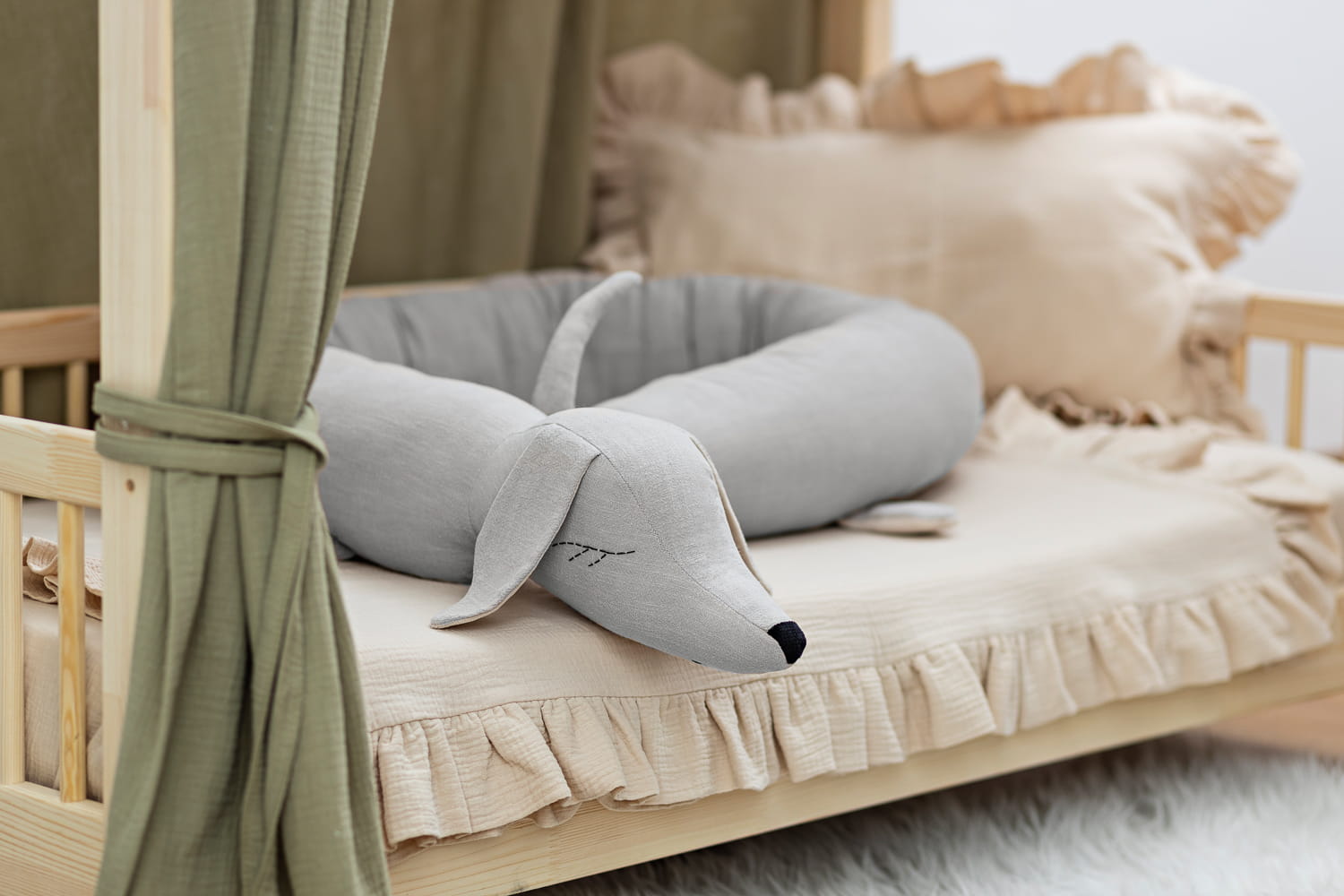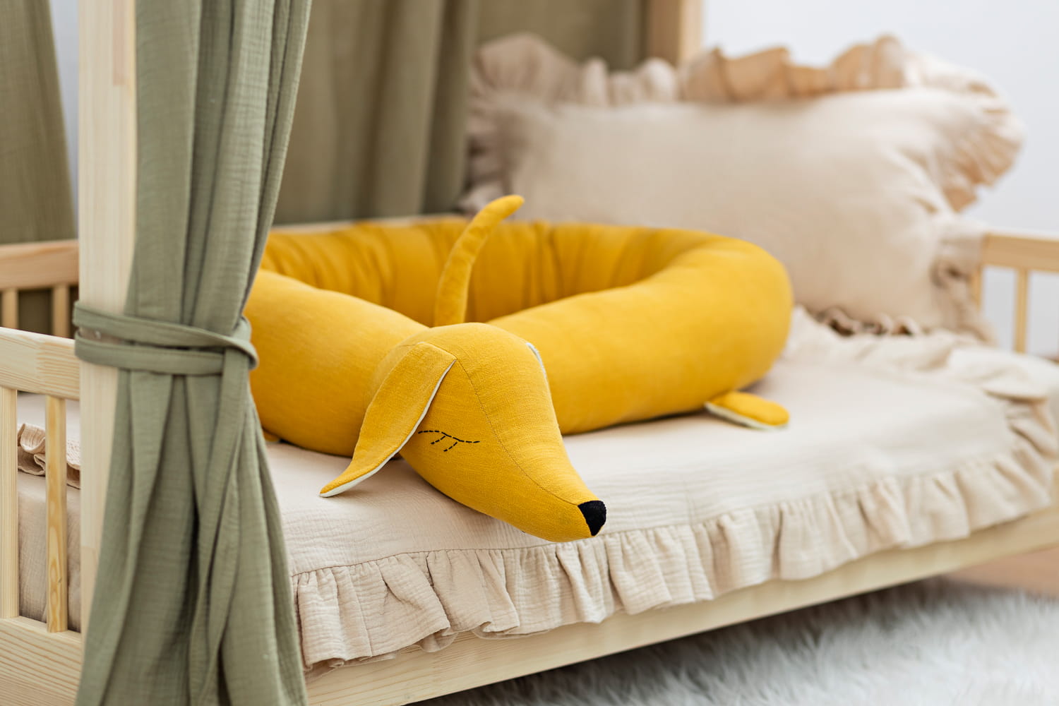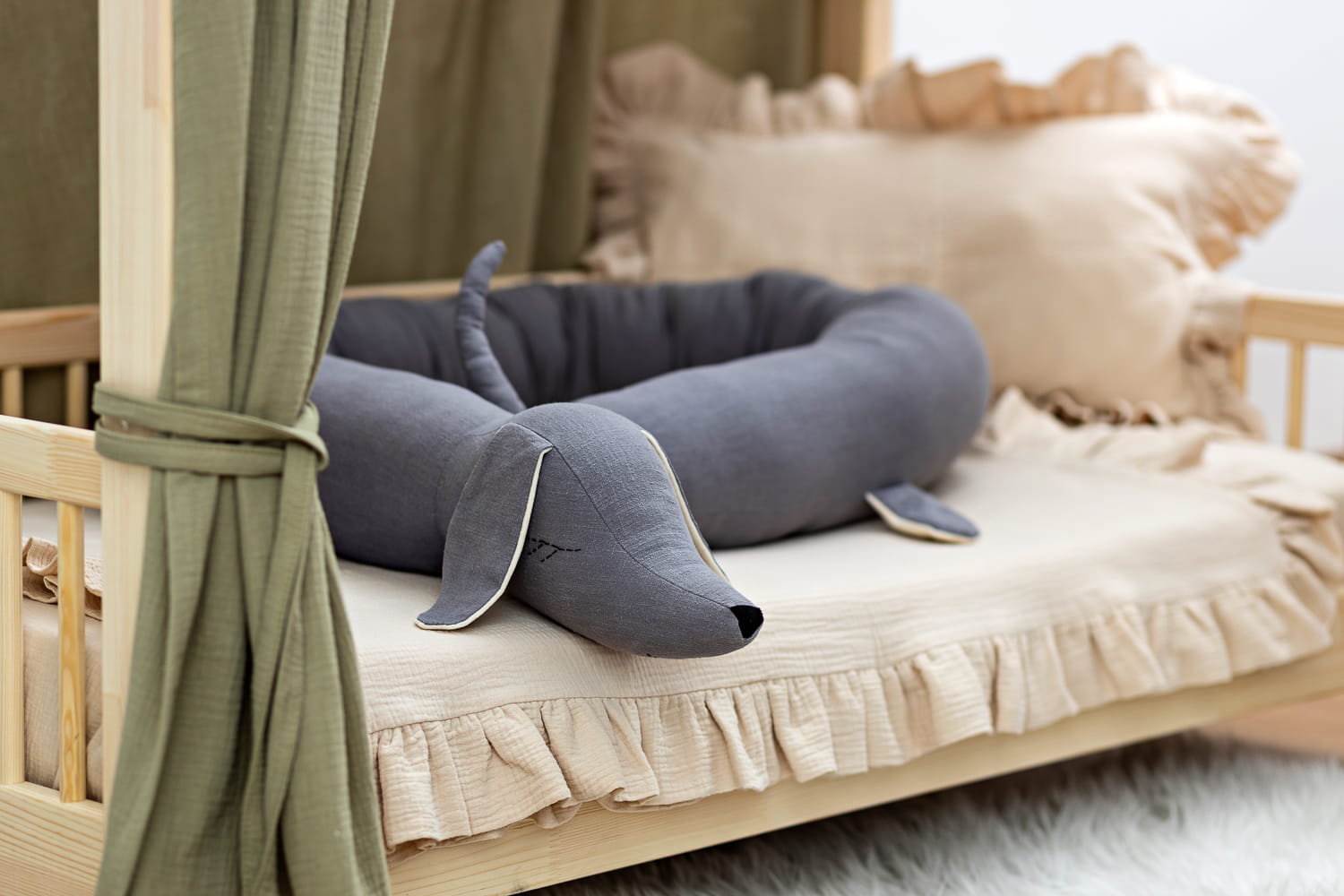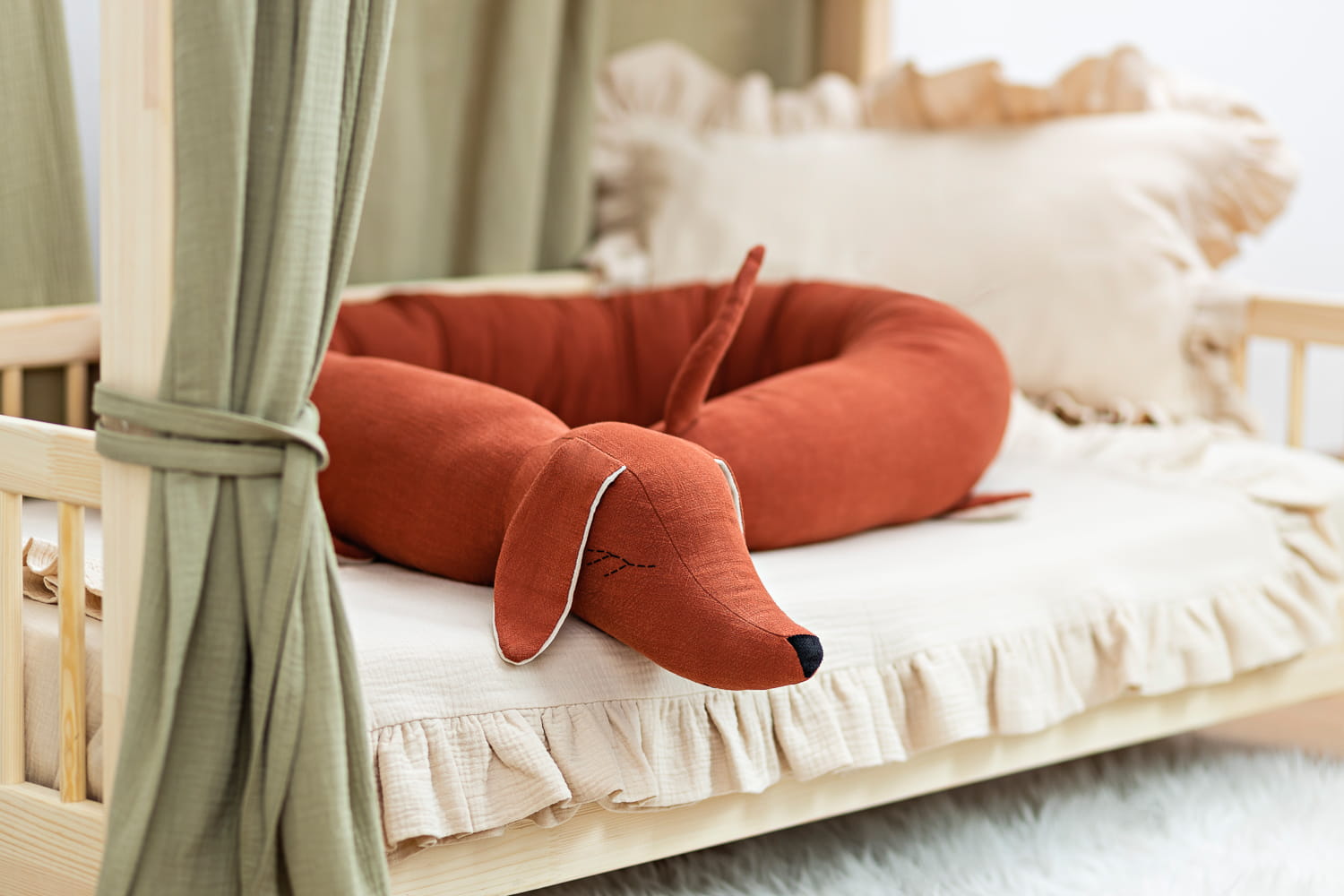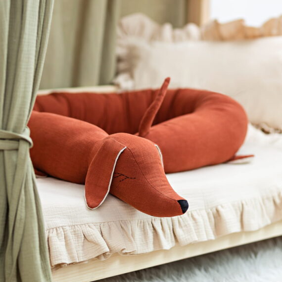 Poznaj naszego jamnika z lnu – nie tylko ochraniacz, ale też najlepszy towarzysz snu. Miękki, naturalny i gotowy do tulenia. Sprawia, że dziecięce łóżeczko staje się jeszcze bardziej przytulne i bezpieczne.