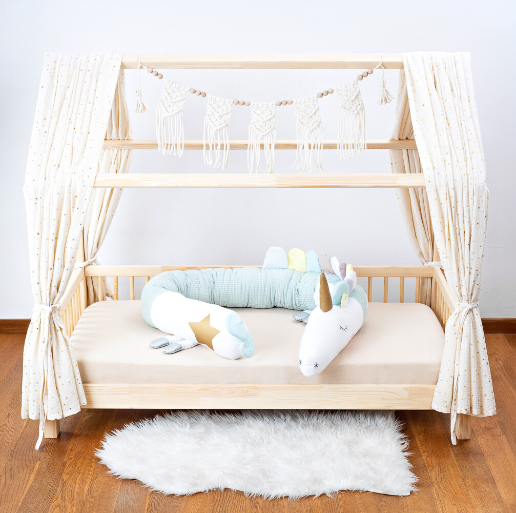Poduszka ozdobna jednorożec – miętowy sen na magicznej łące. Miętowy jednorożec przynosi świeżość i bajkowy klimat do pokoju dziecka. Jego ręcznie haftowana buzia i puszyste elementy zachęcają do zabawy i snu w jego towarzystwie. To nie tylko funkcjonalny ochraniacz, ale i czarujący towarzysz odpoczynku. W całości wykonany z certyfikowanej bawełny bezpiecznej od pierwszych dni życia.