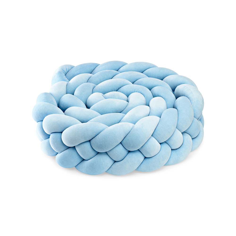 Ten wyjątkowy warkocz został zapleciony z czterech pasm certyfikowanego muślinu bawełnianego, co nadaje mu efektowny, pełny kształt i wyjątkową miękkość. Jest wysoki i doskonale chroni dziecko przed uderzeniami o szczebelki, a jednocześnie zajmuje tylko około 6 cm szerokości łóżeczka. Dzięki temu zapewnia bezpieczeństwo bez ograniczania przestrzeni. To piękne, funkcjonalne rękodzieło, które podkreśli charakter dziecięcego pokoju.