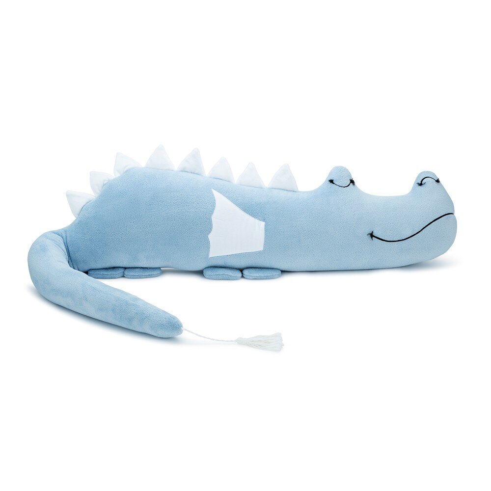 Poduszka smok z pluszu – miękka i dekoracyjna przytulanka. Błękitny Smokozaur otula jak kocyk i czuwa jak strażnik snu. Jest puchaty, lekki i cudownie miły w dotyku. Dzięki długości 200 cm może chronić bok łóżeczka lub być ozdobą. Wzór zaprojektowany przez Senlove – unikatowy jak marzenia!