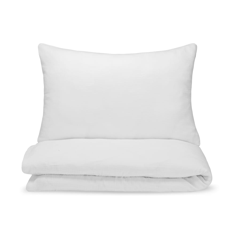 Klasyczna biel i miękki muślin to idealne połączenie dla dziecięcej sypialni. Naturalna tkanina reguluje temperaturę, zapewniając komfortowy sen. Zamek kryty gwarantuje wygodę i eleganckie wykończenie. Brak wypełnienia daje swobodę w dopasowaniu do indywidualnych potrzeb