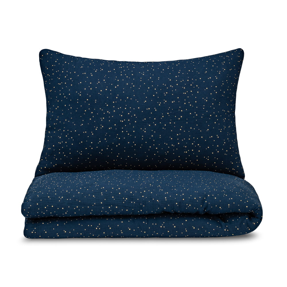 Pościel Muślinowa dla Dzieci – Granatowa ze Złotymi Kropkami