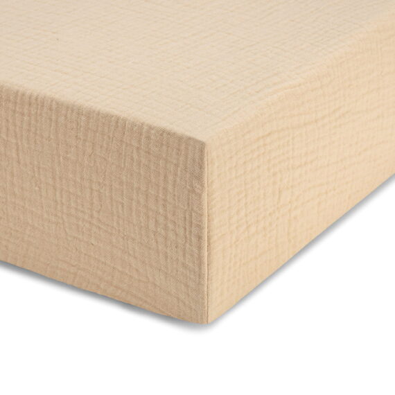 Muślinowa tkanina oddycha i otula delikatną miękkością.